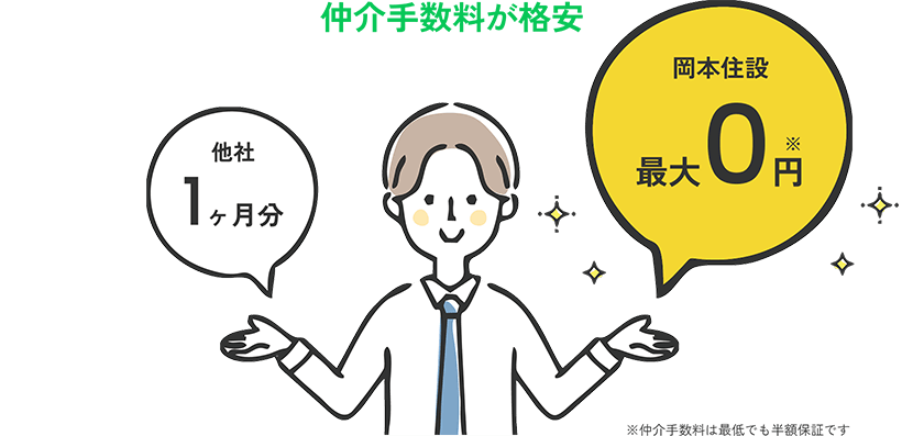 仲介手数料は最大0円!! - ご入居様に、弊社指定のライフライン(水道・ガス・電気)をご契約いただくことで、提携会社から手数料を受け取る仕組みにより実現。もちろん、家賃や敷金・礼金の交渉もおまかせください!