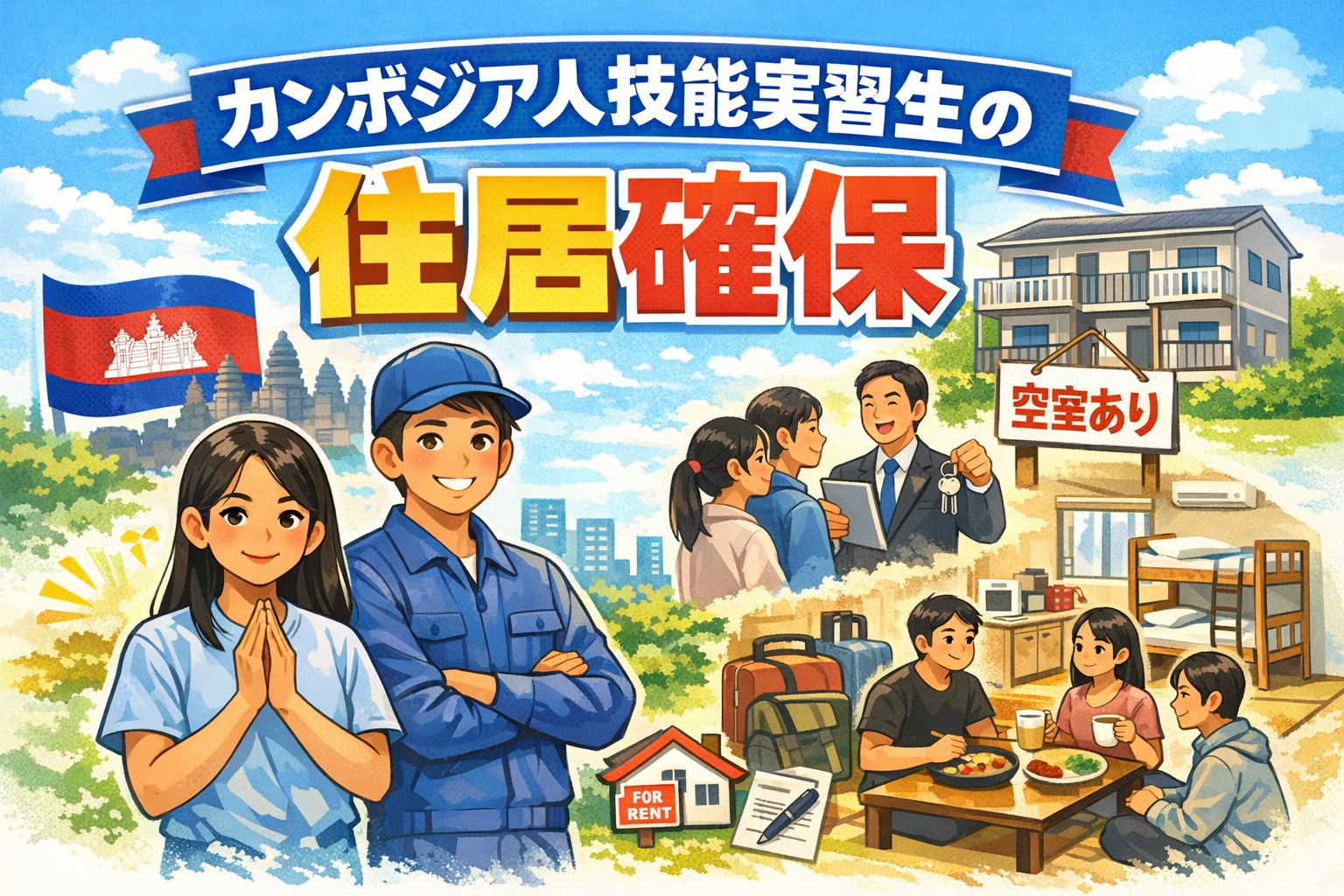 この記事は、カンボジア人をはじめとする外国人技能実習生を受け入れる経営者・人事担当者・監理団体スタッフに向けて、住居確保の義務と実務をわかりやすく解説するガイドです。
